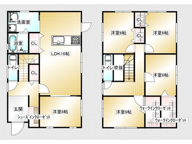 | 間取り内訳 | LDK16、洋室6帖×5部屋 | |||